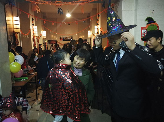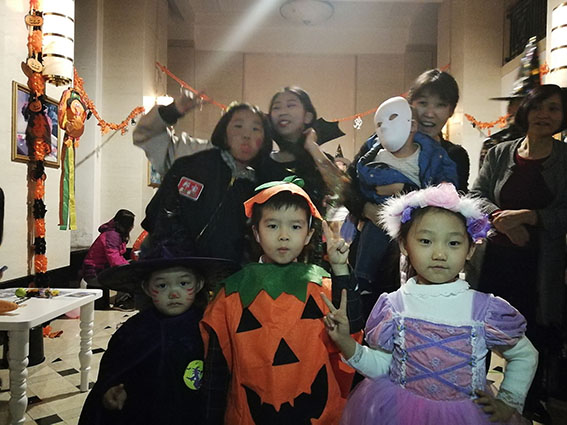下午五點(diǎn)“小鬼們”便陸續(xù)到來,先來的小鬼們當(dāng)先玩起了趣玩?zhèn)鹘y(tǒng)游戲,什么積木搭建、氣球拼字、刻南瓜燈、畫面具、不給糖就搗亂等等,玩的不亦樂乎,整個趣玩始終沉浸在熱鬧的氣氛中,高潮此起彼伏,處處洋溢著孩子們的歡聲和笑語。