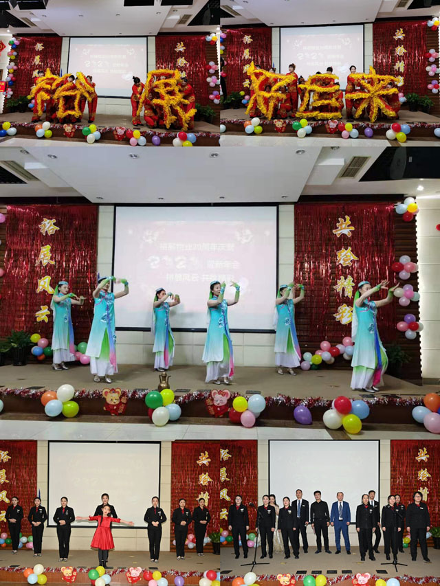 各部門同事們各施所長,為大家帶來了精彩絕倫的視聽盛宴。點燃全場的開場舞《好運來》,15位演員分別用扇子擺出“恭祝”、“裕展”、“好運來”、“2020”“大吉大利”的造型、《回族姑娘》、三句半《裕展風采》以及《夸夸我們物業人》、合唱《我和我的祖國》、引得大家笑聲連連的小品《胡椒面》、裕展成立二十周年詩朗誦《輝煌二十載》、與我們物業日常工作息息相關情景劇《陽光下的我們》、物業的日常接待禮儀手語舞《禮》、臨時被主持人請到臺上獻唱《精忠報國》的黃總,也引起了一片歡呼,還有很多節目高潮迭起,令人目不暇接。表演期間游戲互動,調動員工們的熱情,將現場的氛圍推向又一個高潮,臺下一片歡聲笑語。